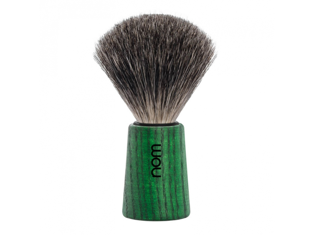 Štětka na holení HJM nom, mořený jasan, zelená, Pure badger